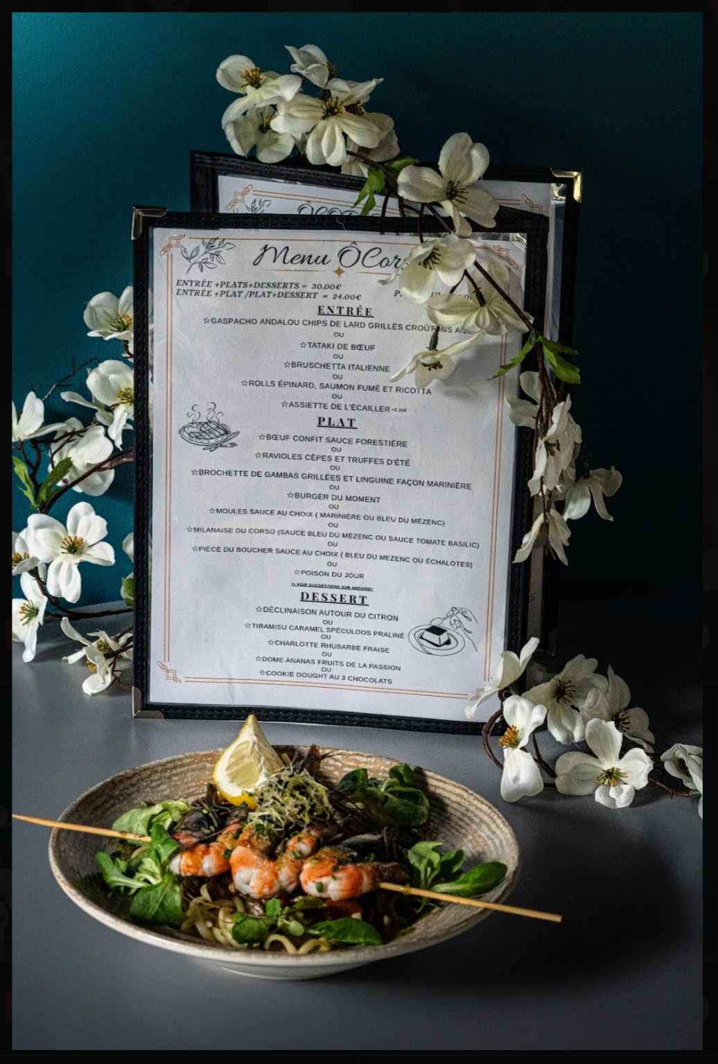 Bienvenue au Restaurant & Bar à Tapas O’Corso, cuisine française inspirée du monde, de nos envies et à base de produits frais. Nous proposons des plateaux de fruits de mer à déguster sur place ou à emporter toute l’année. Découvrez notre espace restaurant lumineux & convivial et sa cuisine maison ainsi que notre Espace Tapas, intimiste & festif. Durant l’été, profitez de nos terrasses dans le Parc.